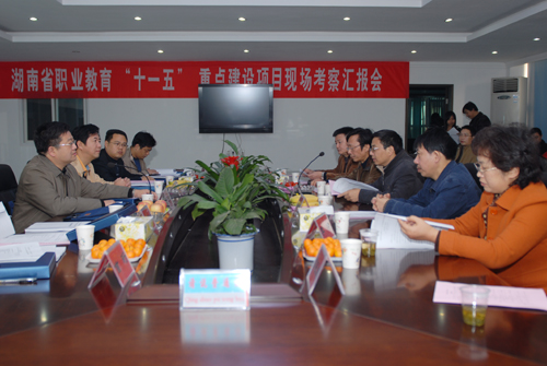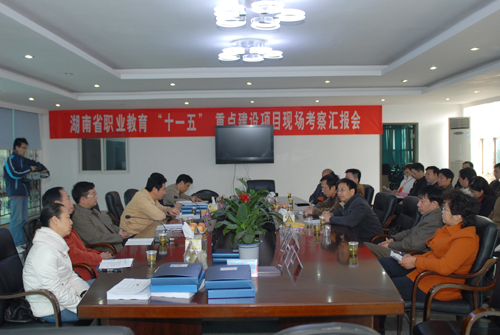 2008年12月19日,由湖南外国语职业技术学院院长黄旭为组长、湖南工程职业技术学院院长熊琦、湖南机电职业技术学院副院长杨翠明、湖南铁道职业技术学院教授首珩、左家哺、湖南职业教育研究所秘书舒底清为组员的湖南省职业教育“十一五”重点建设项目检查组一行,来我院检查“十一五”重点建设项目工作。