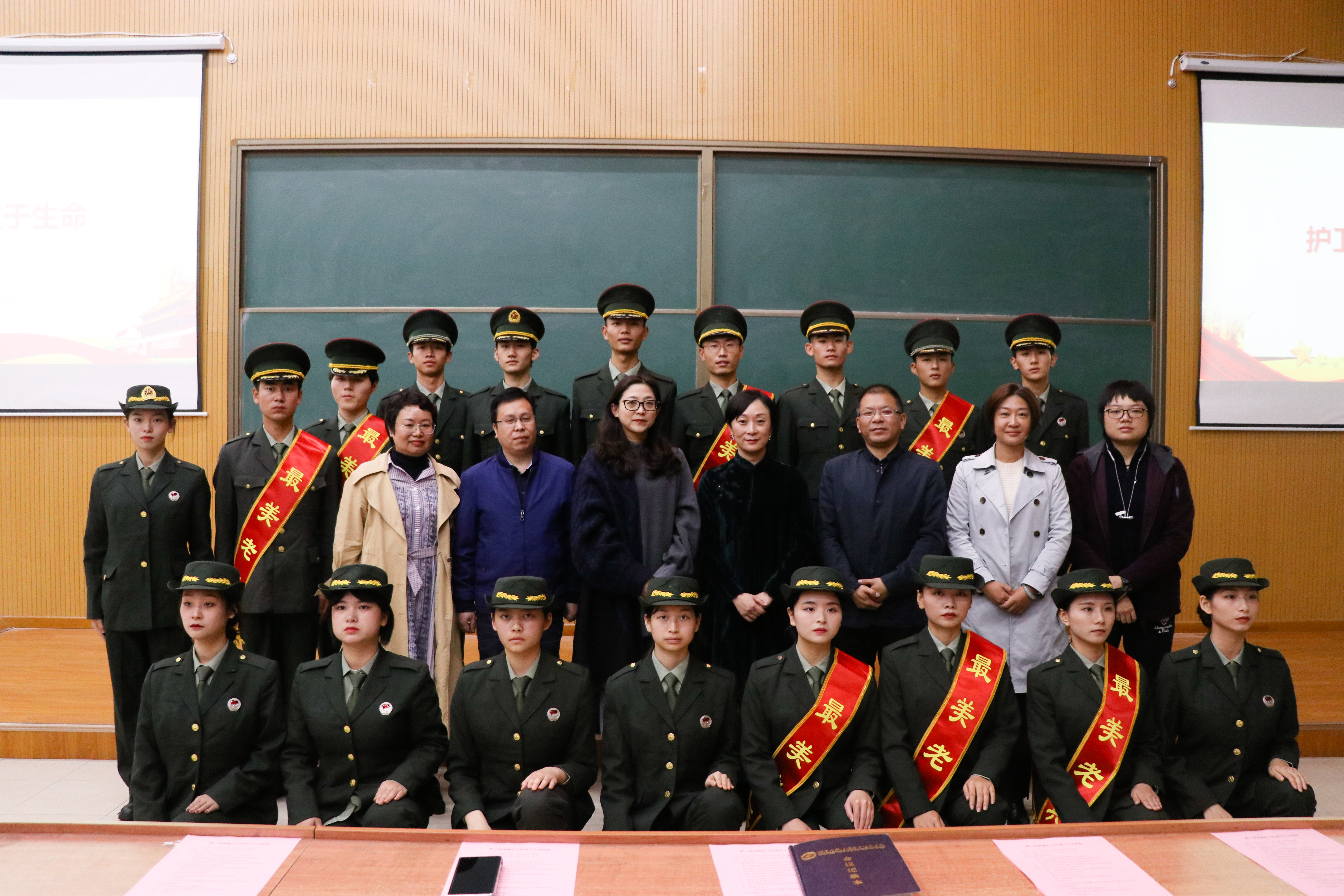 10月18日晚,学生工作部(处)隆重举行第三届国旗护卫队成立大会。学院副院长雷珺麟出席大会为“最美退伍老兵”颁发荣誉证书并发表讲话,学生工作处处长彭涛宣布第三届国旗护卫队就职命令,新闻与传播学院党总支书记钱英、视觉艺术学院党总支书记徐可晶、国际传播学院党总支书记何卫为第三届国旗护卫队代表颁授聘书,会议由学生工作处副处长任春梅主持。第二届和第三届国旗护卫队全体成员、长沙民政职业技术学院国旗护卫队代表、我院传媒青年讲师团代表参加。