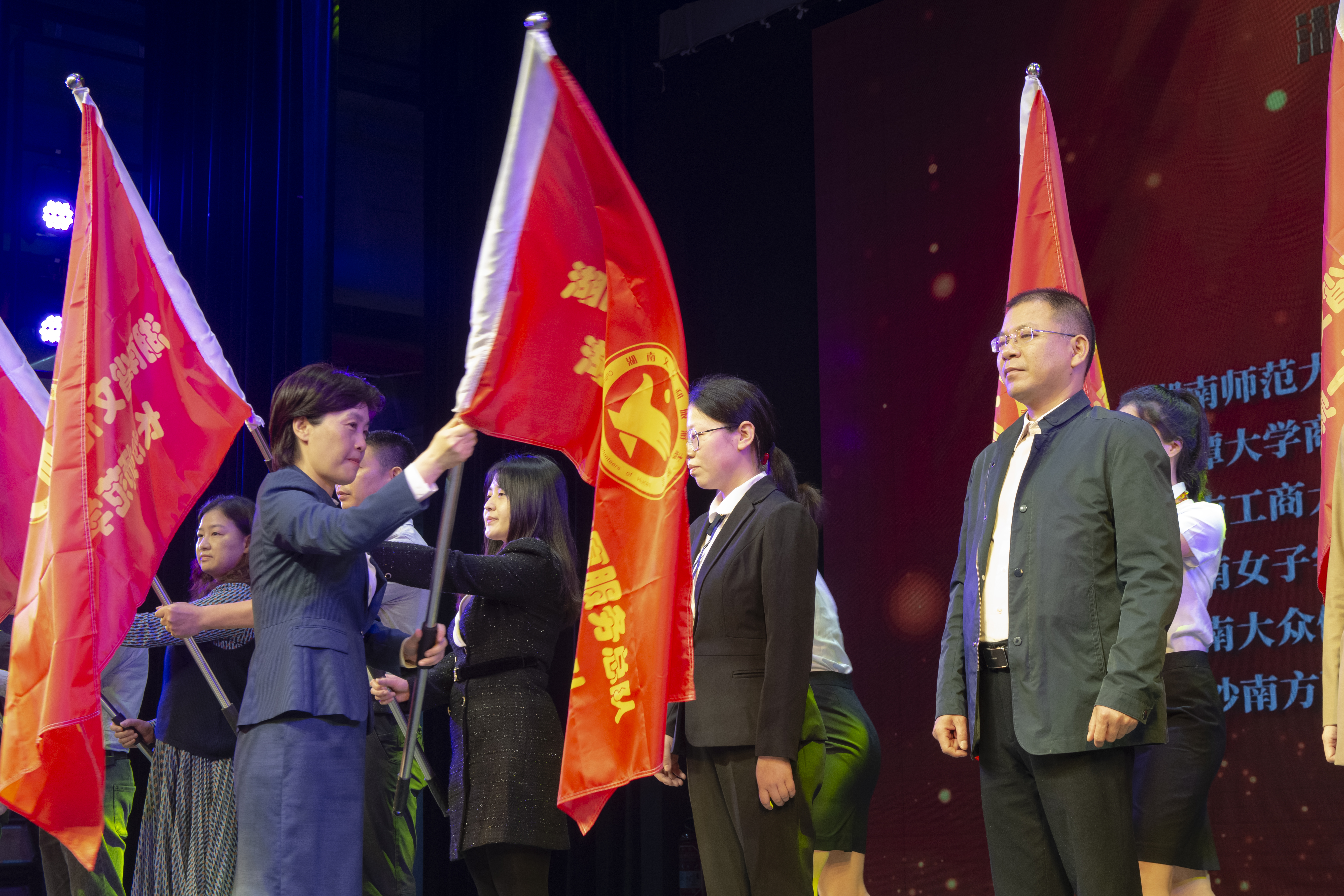5月12日上午,我校受邀参加“湖南省文化和旅游志愿服务总队——首批高校文旅志愿服务支队”授牌授旗仪式。仪式在湖南省文化馆隆重举行,湖南省委宣传部副部长、湖南省文化与旅游厅党组书记、厅长李爱武出席仪式,并为首批11所高校的文旅志愿服务支队授旗,我校学生工作处处长彭涛代表学校出席授旗仪式。