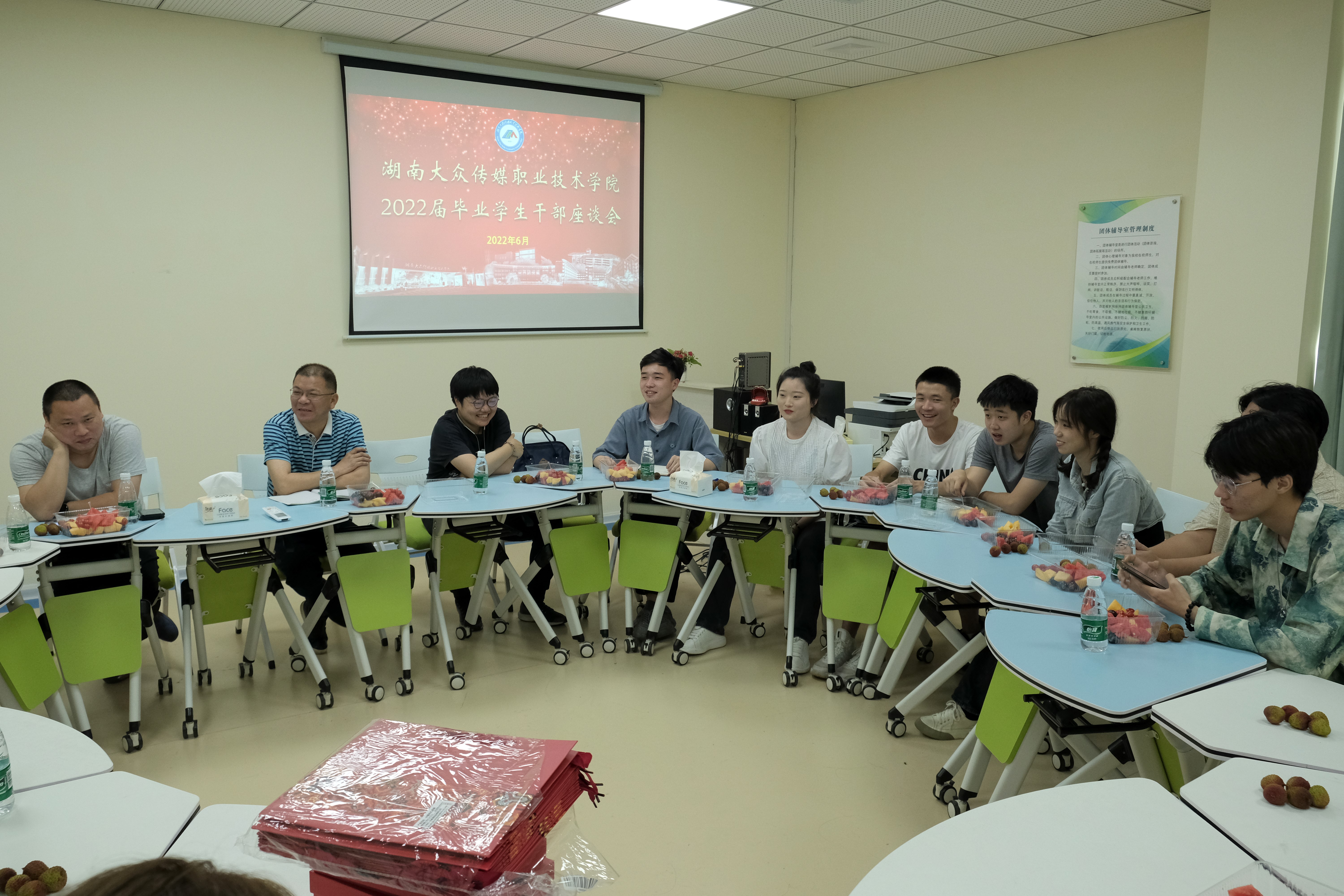 万里鹏程传播正能量,一路春风常怀母校情。6月13日,学院召开2022届毕业学生干部代表座谈会。学生工作处负责人和二十余位毕业学生干部代表欢聚一堂,忆往昔,谋未来!