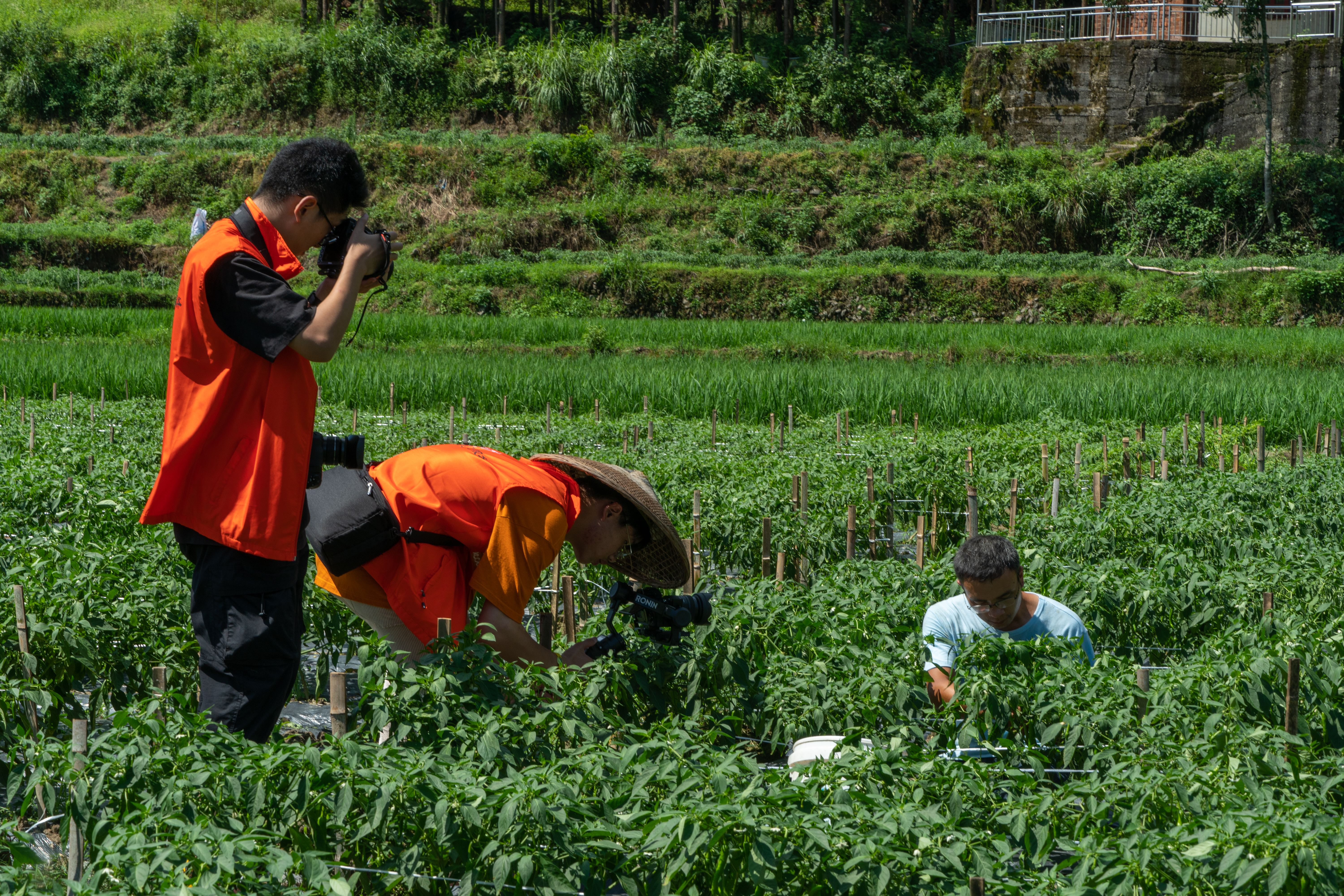 活动期间,志愿服务队还充分发扬文旅志愿服务精神积极参与乡村振兴实践。服务队提前了解到木溪口村大学生陶智海返乡创业种植龙福椒,志愿队成员结合自身专业属性为其拍摄宣传片,做龙福椒推广。