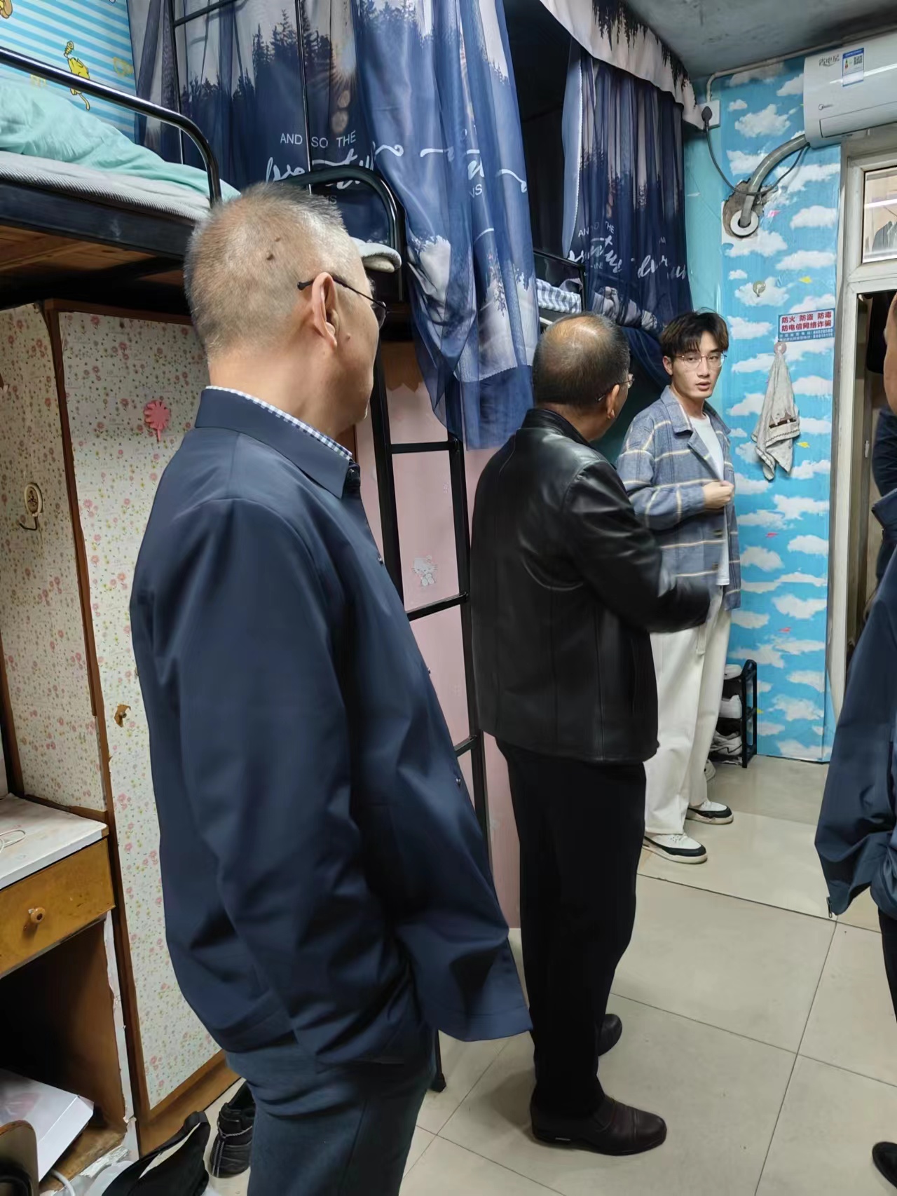4月26日傍晚,学校开展宿舍安全检查工作。党委委员、副校长朱丹、学生工作处相关负责人和各二级学院有关负责人来到学生宿舍一区和二区,现场排查宿舍安全隐患,指导学生营造安全、健康的宿舍环境,为即将到来的“五一”小长假做好准备。
