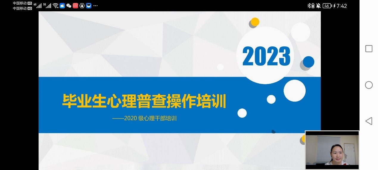 本次心理普查工作包括前期培训、正式实施和后期分析处理等环节。前期培训于5月16日进行,由心理健康教育与咨询中心组织毕业班心理委员以线上方式开展,向同学们详细介绍了心理普查的意义、操作步骤和注意事项。实施方面,本次心理普查使用症状自评量表来了解学生的心理健康状态,近3000名学生完成了普查。后续将由心理中心组织全体专、兼职心理咨询师和辅导员开展数据分析和回访工作。