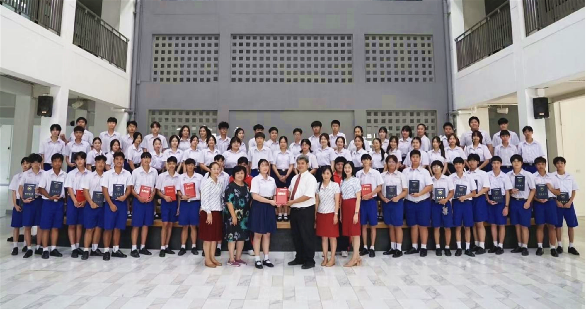 据悉,蒙福学院位于泰国清迈府,涵盖高中、初中、小学,已在高中开设了中文课,并设有孔子课堂。2023年1月9日至1月20日,该校86名师生参加了由中外语言交流合作中心主办、我校承办的“汉语桥”“共赴中文之约,云旅魅力长沙”线上冬令营活动。此前,根据考核结果,贺战兵校长在线为远在泰国的学员颁发了结业证书,并向“优秀学员”颁发荣誉证书。我校将证书集中邮寄到泰国,蒙福学院在当地举行了证书集中颁发仪式。