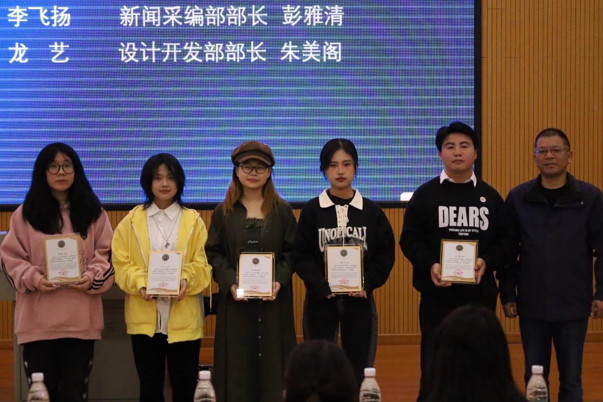 11月8日,校易班学生工作站2023年换届大会在教学楼D101正式举行。党委委员、副校长朱丹、学生工作部部长彭涛、副部长易国强、影视艺术学院党总支副书记黄丽娟、新媒体技术学院党总支副书记徐丹红、管理学院党总支副书记陈琦、视觉艺术学院团总支书记甄苗、易班学生工作站指导教师曾煜恒以及校级学生组织国旗护卫队、传媒青年讲师团、校学生会、传媒新青年的代表及各届优秀易班委员代表参加。会议由第五届易班学生工作站新闻采编部部长蒋鲜主持。