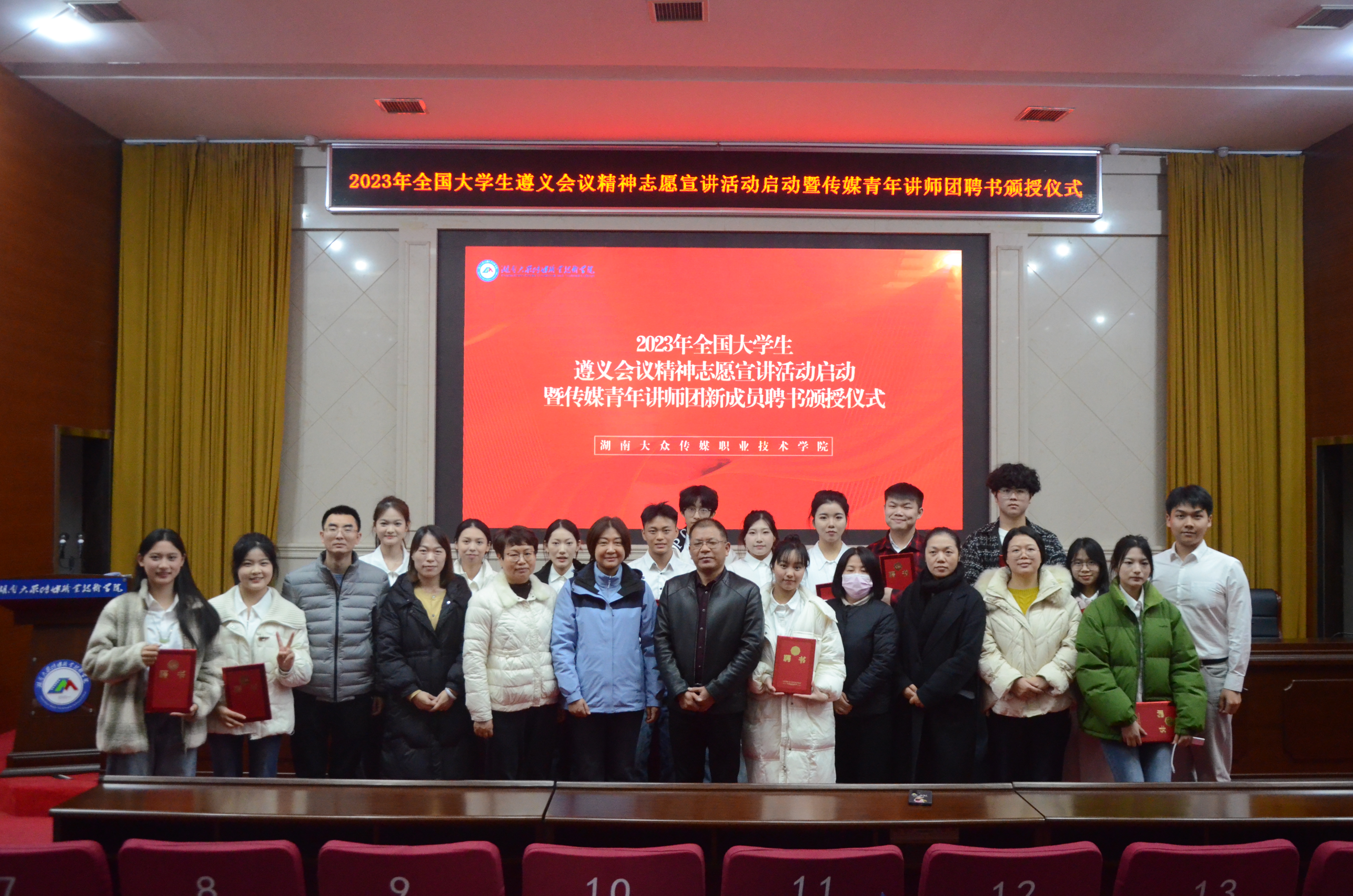 为全面学习贯彻党的二十大精神,深入贯彻落实习近平总书记提出的“传承红色基因、讲好遵义故事”的重要要求。近日,学校启动2023年全国大学生遵义会议精神志愿宣讲活动暨守正讲堂·传媒青年讲师团成员聘书颁授仪式。学生工作部、团委、学校关工委、各二级学院相关负责人及学生代表参加活动。