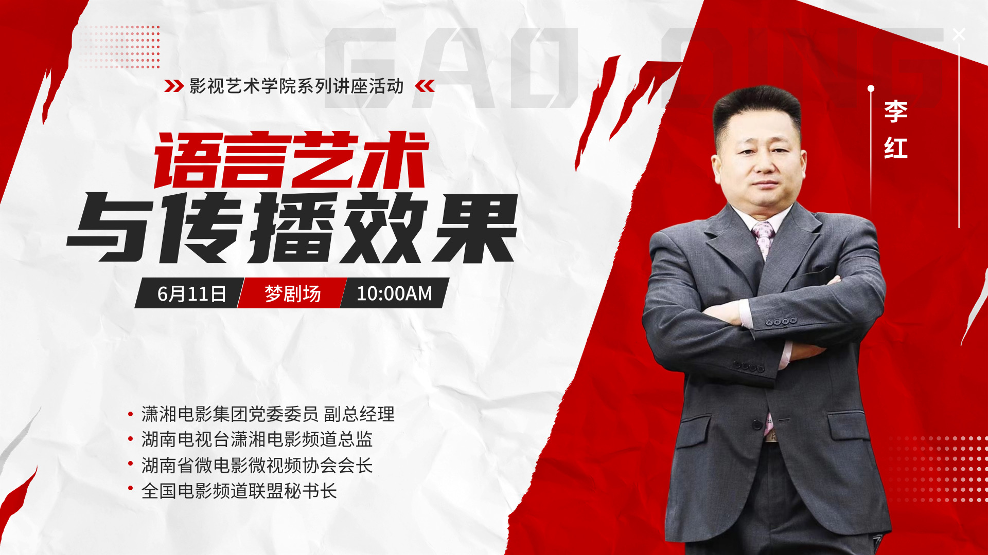 李红围绕语言艺术与传播效果主题与师生进行深入交流。他以“案”说“法”,充分结合实际案例,从逻辑重音、用气发声、以情带声、情景再现、善于模仿、大声朗读等方面阐述如何“说好每一句话”;从勤写日记、勤做他人做过的事、勇做他人未做过的事等方面讲述如何“做好每一件事”;从养成好习惯、改掉坏习惯等方面强调“习惯改变命运”讲座生动有趣,现场气氛热烈,激发了在场青年学子努力学习专业的内生动力。