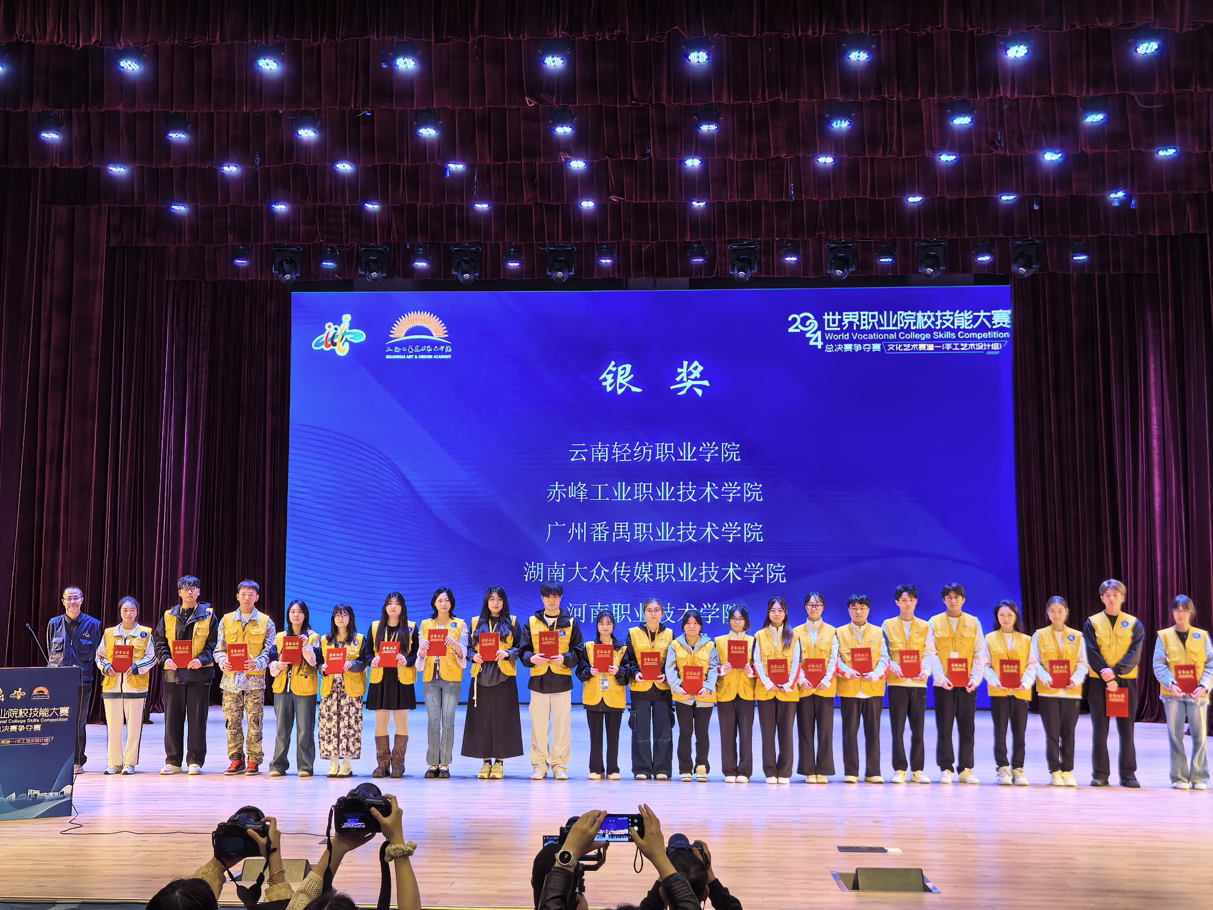 我校参赛团队迅速响应,组织师生调整备赛计划,统筹校内外资源,积极适应世赛新变化。通过激烈角逐,最终在舞台布景赛项和手工艺术设计赛项中斩获银奖;在视觉艺术设计赛项、数字艺术设计赛项、短视频创作与运营赛项和环境艺术设计赛项中斩获铜奖。
