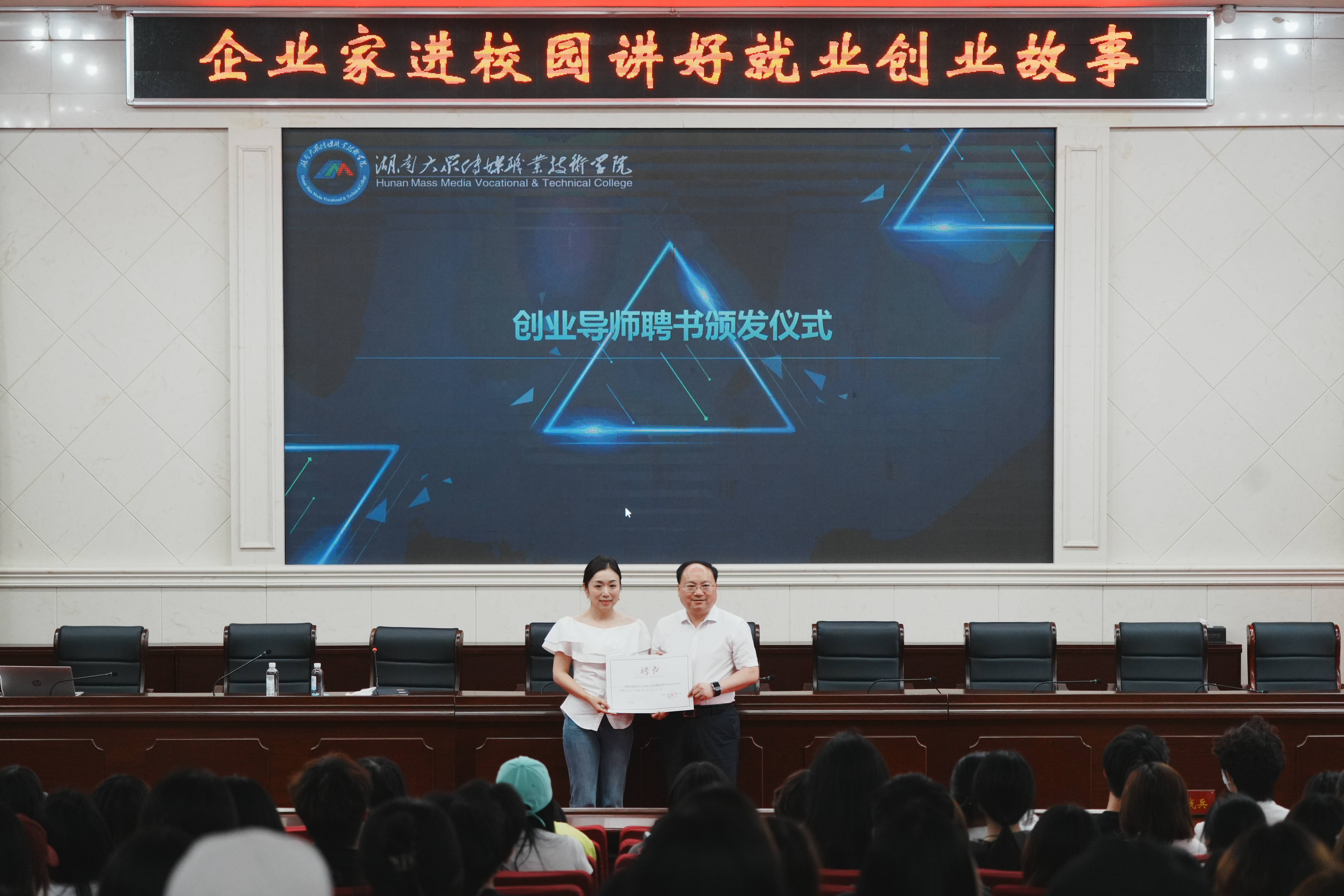 讲座结束后,学校党委副书记、校长贺战兵向曹蕊颁发了创业导师聘书。