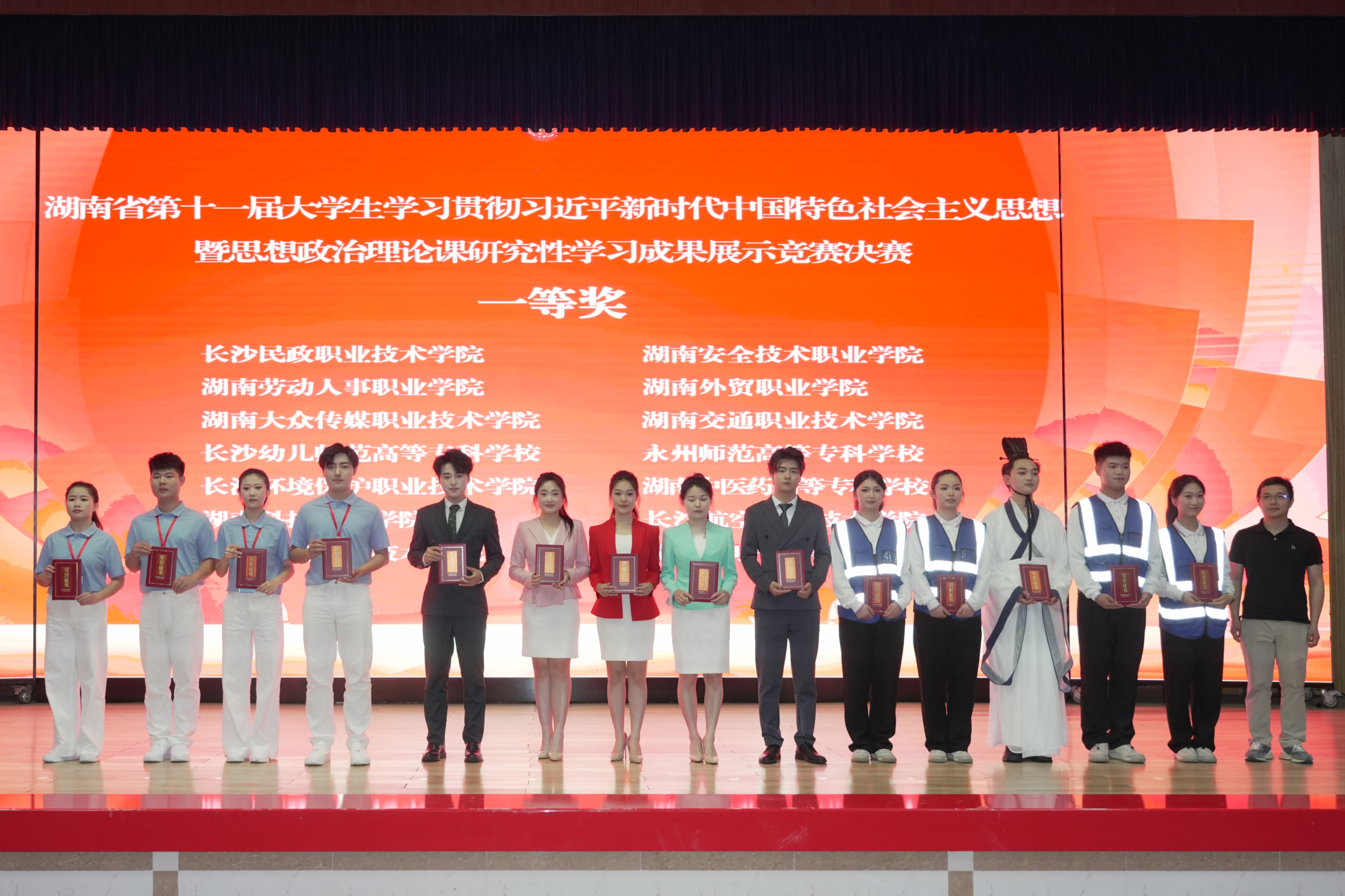 (马克思主义学院 供稿)近日,由湖南省委教育工委、湖南省教育厅主办的湖南省第十一届大学生学习贯彻习近平新时代中国特色社会主义思想暨思想政治理论课研究性学习成果展示竞赛(高职高专组)圆满落幕。我院师生凭借扎实的理论基础和出色的展示能力,荣获一等奖1项、二等奖2项。
