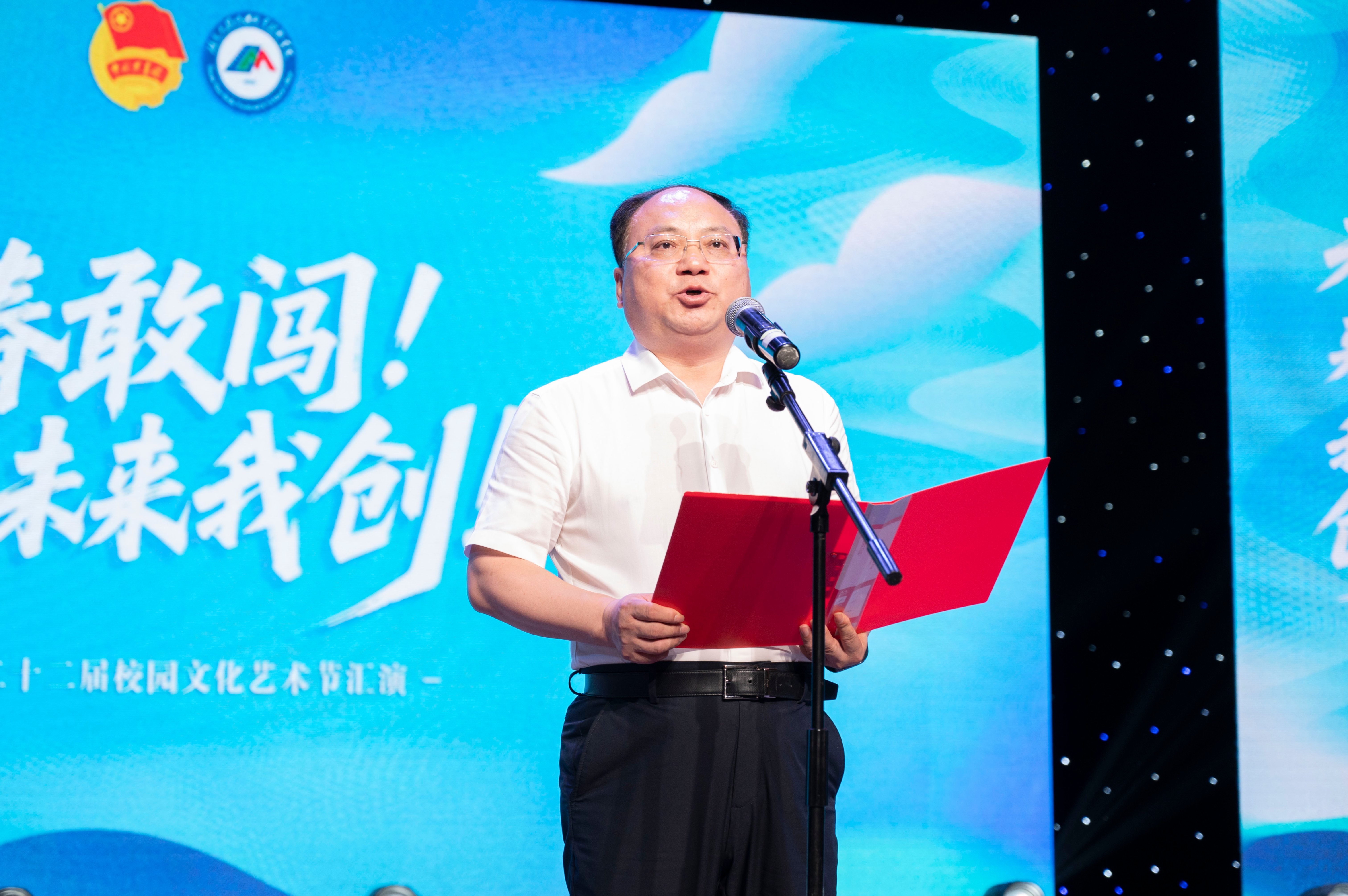 (校团委 杨雨晴 供稿)6月9日下午,“青春敢闯 未来我创”第二十二届校园文化艺术节汇演在艺术楼实验剧场隆重举行。学校党委书记李三福,校长贺战兵,党委副书记谢景伟,副校长程桂珍、雷珺麟、朱丹,纪委书记杨金辉,各学院及职能部门负责人、师生代表、家长代表近500人观看了演出。