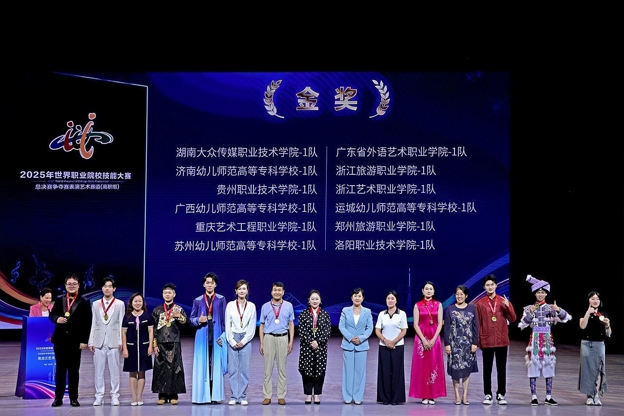 (影视艺术学院 供稿)在刚刚落幕的2025年世界职业院校技能大赛总决赛争夺赛表演艺术赛道(高职组)中,我校影视艺术学院与视觉艺术学院联合组建的师生团队以绝对优势摘得桂冠,实现湖南省职业院校在该赛道金奖的历史性突破,为学校再添一项标志性成果。