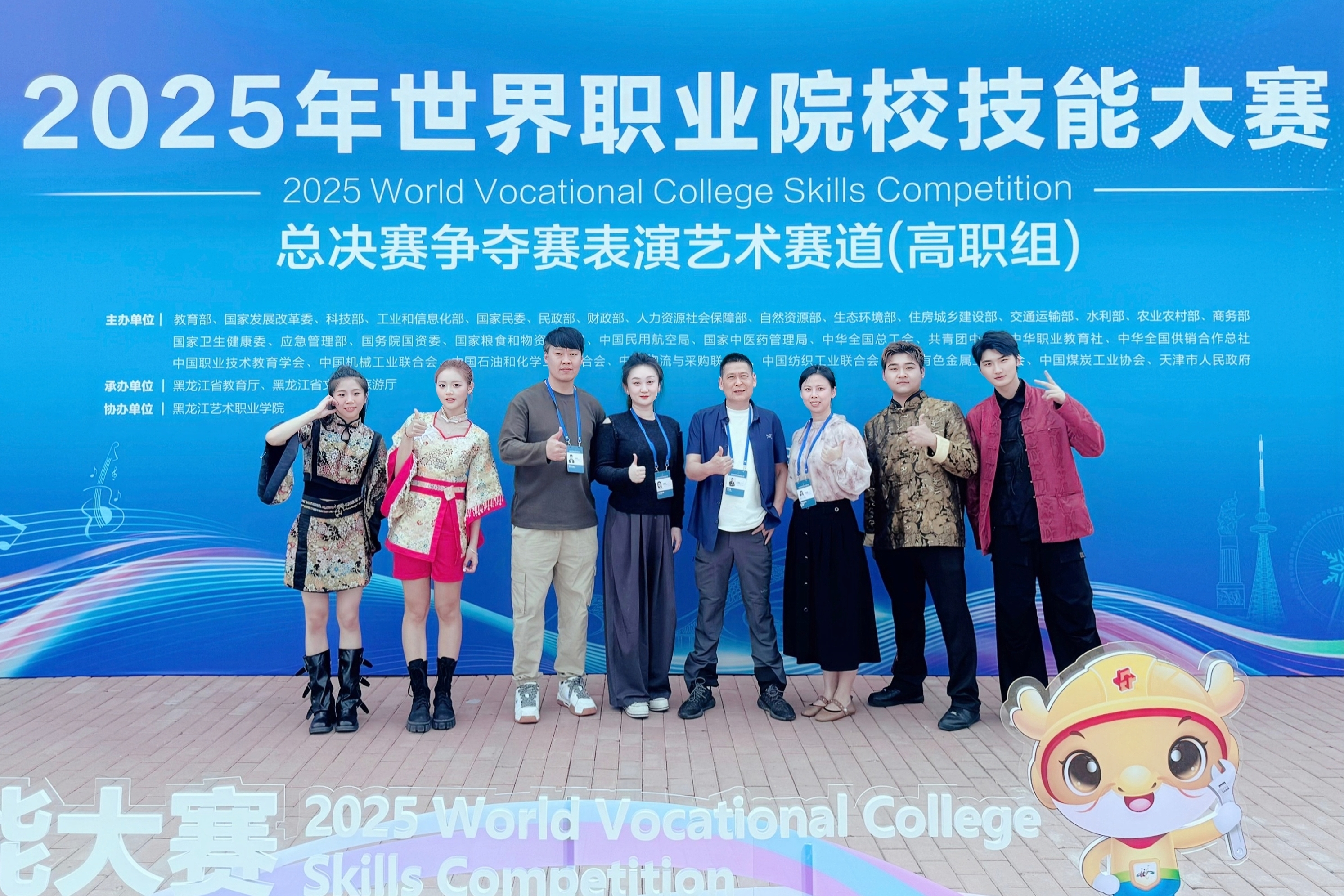 作为我国职业教育领域规格最高、参赛规模最大的赛事,此次世界职业院校技能大赛表演艺术赛道共吸引全国31个省份的112支顶尖团队和近千名师生参赛。经过5天激烈角逐,由影视艺术学院教师王猜猜、刘宪伟和视觉艺术学院教师赵旭菁联合指导,影视艺术学院学生袁莹莹、杨正、邓杰仁、蒋晨组成的团队,凭借精湛的技艺、创新的表达和极具特色的舞台呈现征服评委,斩获赛事最高荣誉。