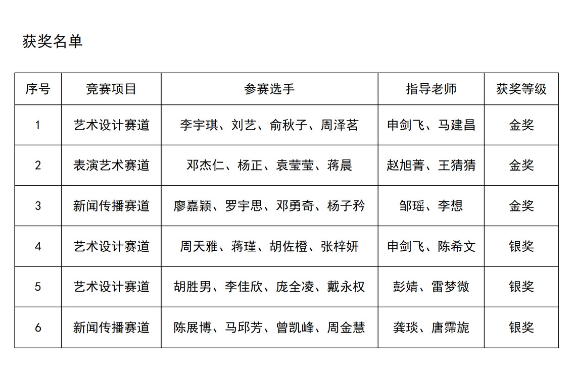 (教务处 王婵婷 供稿)近日,2025年世界职业院校技能大赛多个赛项圆满闭幕。截至目前,我校6支参赛团队在高职组“艺术设计赛道”、“表演艺术赛道”和“新闻传播赛道”中共获得3项金奖和3项银奖,成绩再创新高,在全国名列前茅。