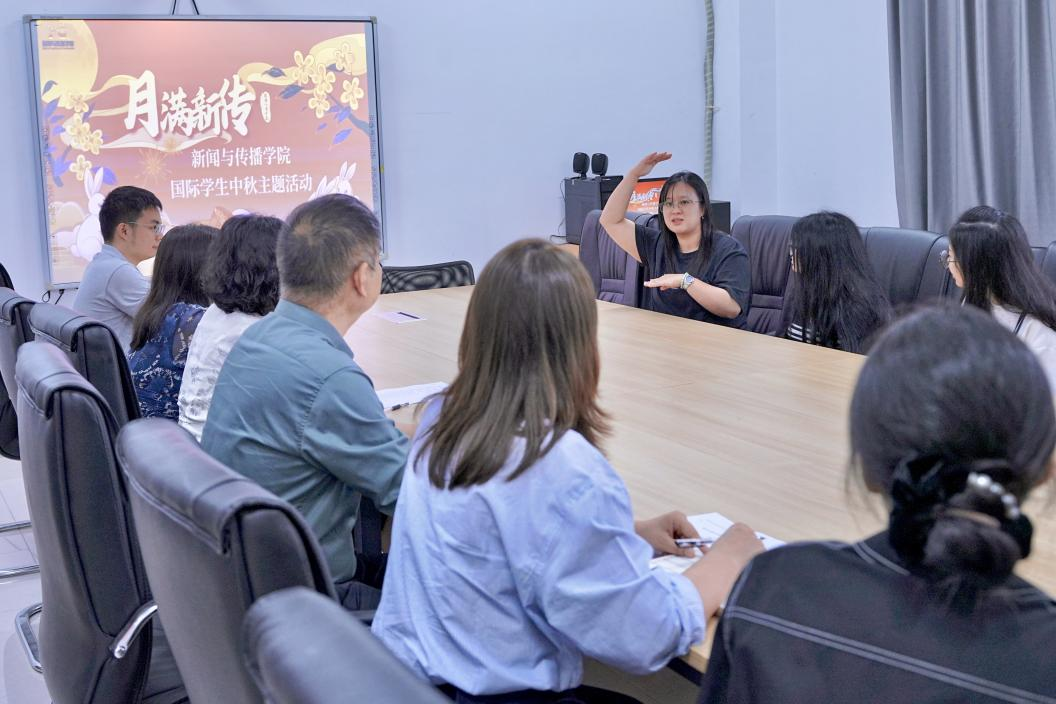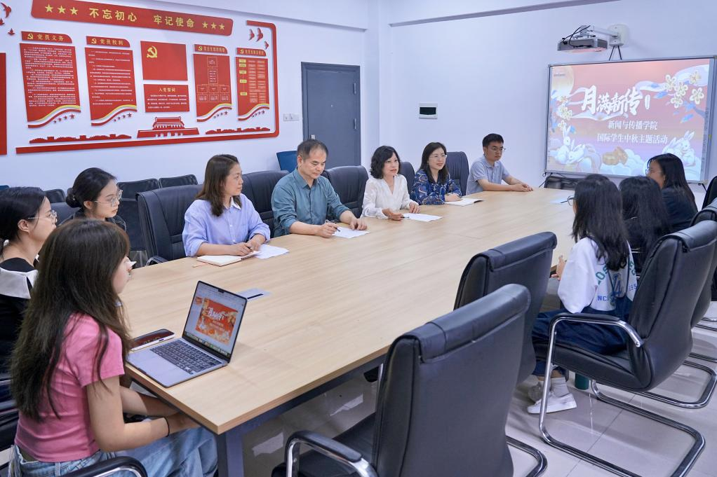 为加强对国际学生的人文关怀,营造开放包容的校园氛围,在中秋、国庆双节来临之际,新闻与传播学院于2025年9月29日举行国际留学生欢迎会。学院党总支书记刘小华、副院长罗琦、党总支副书记李洁、教务办主任史艾丽思、学工办主任李艳梅、团总支书记邓芳芳、辅导员熊成烨以及全体国际留学生齐聚一堂,共同迎接新学期的开始。