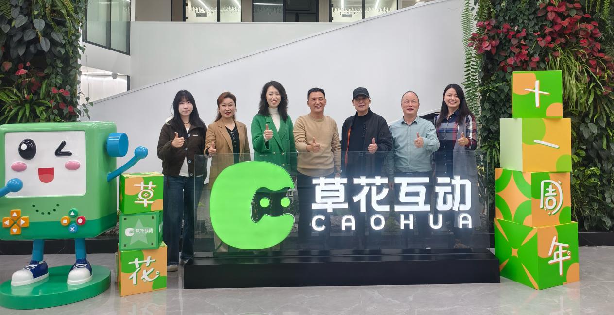 2025年11月10日下午,湖南大众传媒职业技术学院影视艺术学院院长李祖仕、新媒体技术学院院长李辉熠、影视艺术学院副院长蒋丽芬、播音与主持专业教研室主任林谦等一行,赴湖南草花互动科技股份公司开展实地调研。作为湘江新区数字文化产业的标杆企业,草花互动创始人兼总经理杜正清、高级顾问张静、人才发展负责人李欢等企业代表全程接待,双方围绕数字内容产业人才需求、产教融合项目落地等核心议题深度研讨。