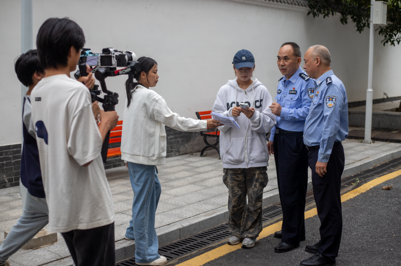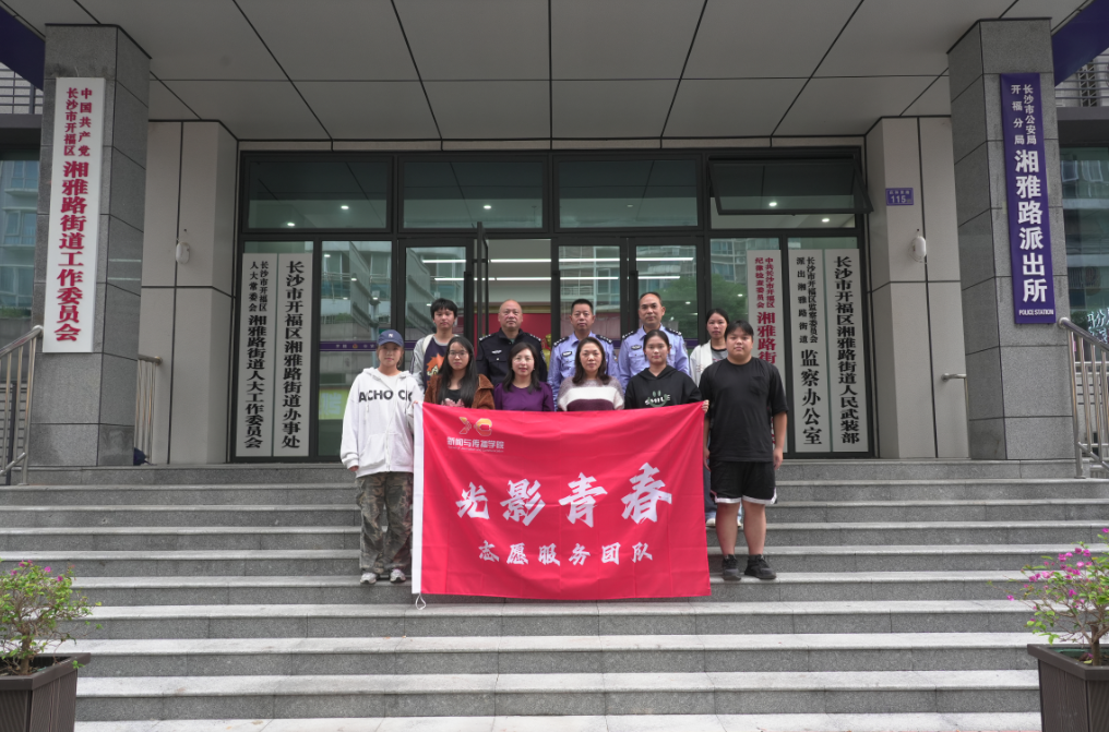 为提升全民反诈意识,以更生动直观的方式传播防范知识,近日,新闻与传播学院“光影青春”志愿服务团队应邀走进长沙市开福区湘雅路派出所,与一线民警携手合作,共同策划并拍摄系列反诈主题短视频,以专业实践为平安建设贡献青春力量。