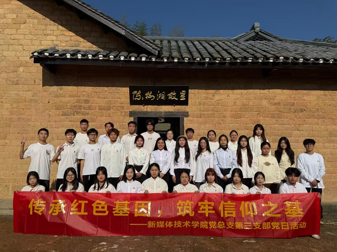 为提升学生党员党性修养,深化学生对党的认识,进一步加强学生党员的理想信念教育,2025年11月15日,新媒体技术学院党总支第三支部组织全体学生党员,赴长沙县福临镇陈树湘故居与影珠山抗战遗址公园,开展了一场以“传承红色基因,筑牢信仰之基”为主题的党日活动。在教师党员的带领下,40名学生党员通过沉浸式学习,接受了一次深刻的党性教育和精神洗礼。