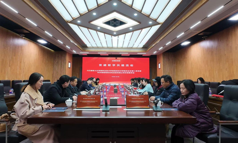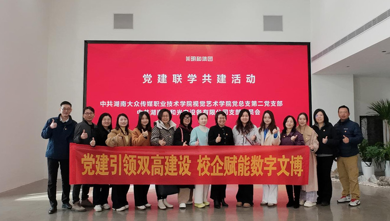 2025年11月19日,中共湖南大众传媒职业技术学院视觉艺术学院党总支第二党支部委员会与中共湖南明和光电设备有限公司党支部委员会,以“党建引领双高建设,校企赋能数字文博”为主题开展党建联学共建活动,深耕“红色文化+数字技术+视觉艺术”融合赛道,为产教融合与文化传承注入新活力。