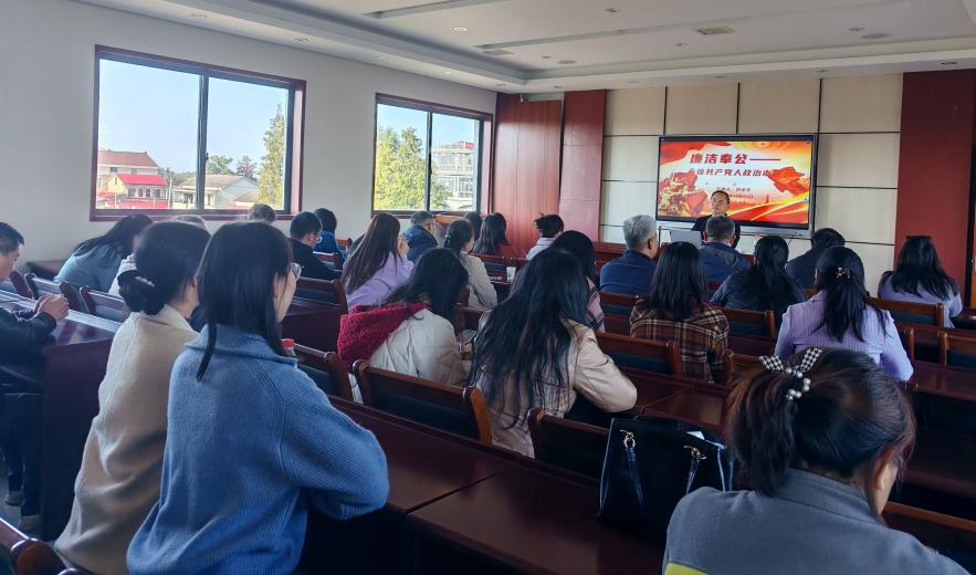 在金家堤党群服务中心会议室,新闻与传播学院党总支书记刘小华同志给全体教师党员上了一堂主题为“廉洁奉公—永葆共产党人政治本色”的微党课。刘小华强调,践行廉洁奉公要紧密结合时代要求,结合工作实际需要,以本次主题教育党日活动为契机,重温革命先辈舍我的家国情怀,提高政治站位,从为社会主义现代化建设培养后继人才的战略高度,在教书育人日常工作中,坚持廉洁从教,以廉示教,用廉促教。