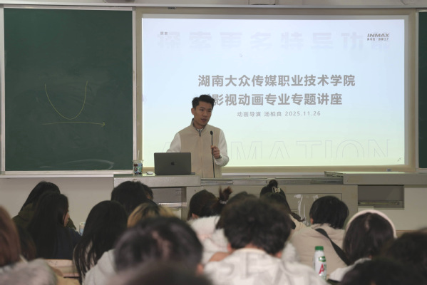 (影视动画教研室供稿)为深化产教融合,助力学生精准把握动画产业发展脉搏,11月26日下午,湖南大众传媒职业技术学院影视动画专业在教学楼A407举办“动画创作与行业实践前沿”专题讲座。本次活动特邀INMAX异马也动画工厂导演汤柏良担任主讲,影视动画专业大三全体学生、专业教师及相关专业师生踊跃参与。