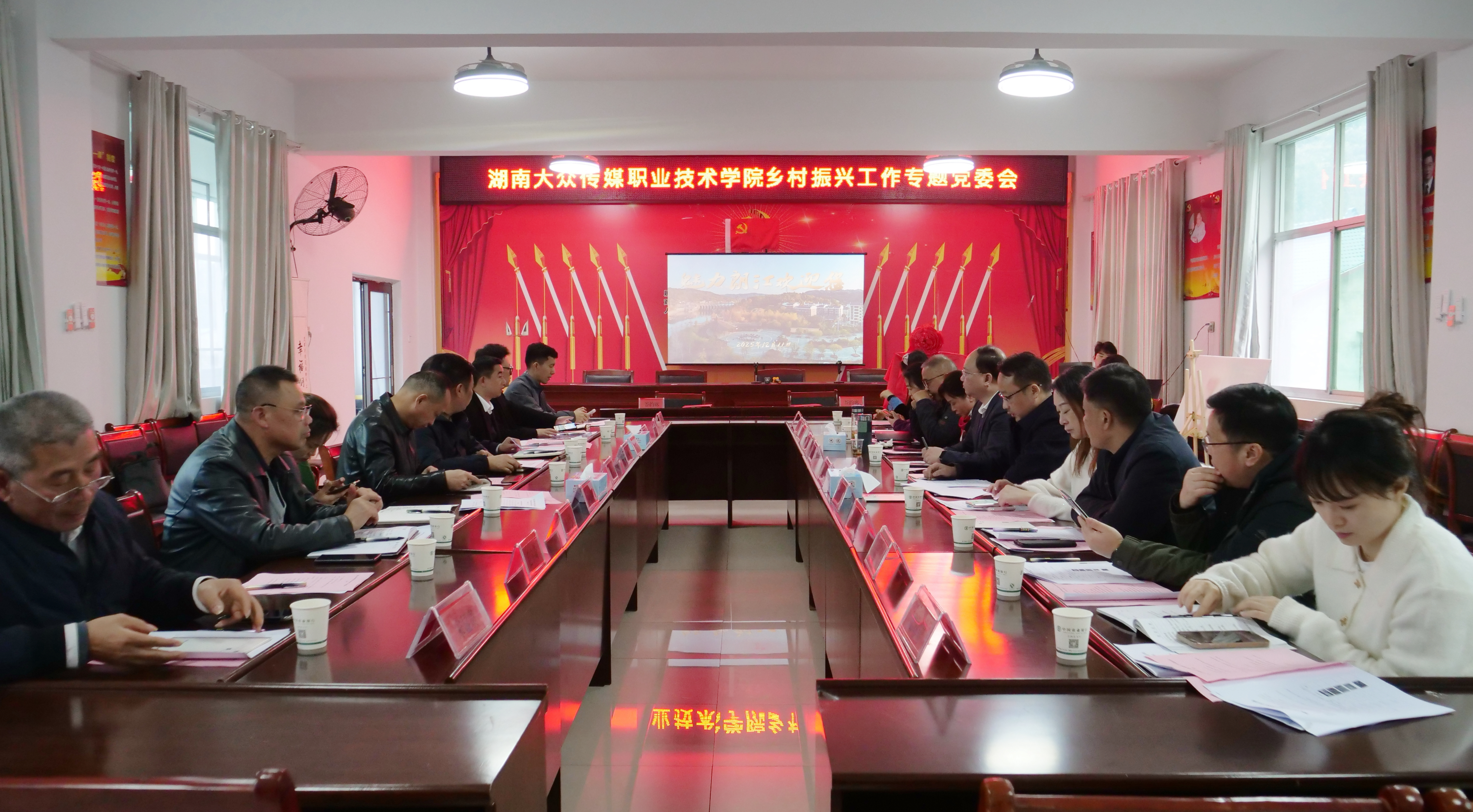 当日下午,乡村振兴专题党委会在朗江村村部会议室举行。与会人员集体学习了习近平总书记关于“三农”工作和乡村振兴战略的重要论述,随后听取了乡、村两级及驻村工作队的工作汇报。会同县县委常委、政法委书记梁中相表示,高校将党委会开到乡村一线,体现了高度的政治责任感,为朗江村发展增添了新动力,期待未来校地合作持续深化,共绘乡村振兴新画卷。