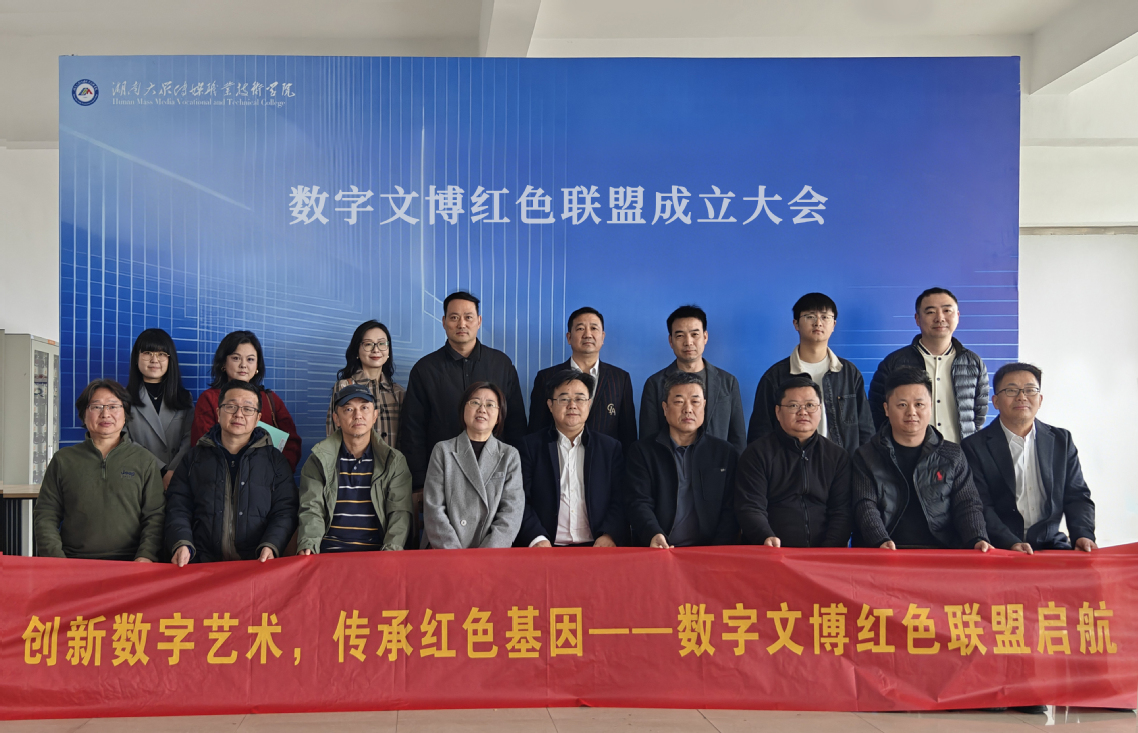 12月5日,数字媒体艺术设计专业群联合湖南美创数字科技有限公司、厦门风云科技股份有限公司、湖南省博物馆等13家企事业单位,在该校正式举行“数字文博红色联盟”成立大会。副校长兼专业群负责人申剑飞、视觉艺术学院院长袁金戈及各成员单位代表出席会议,并共同签署《数字文博红色联盟共同宣言》。