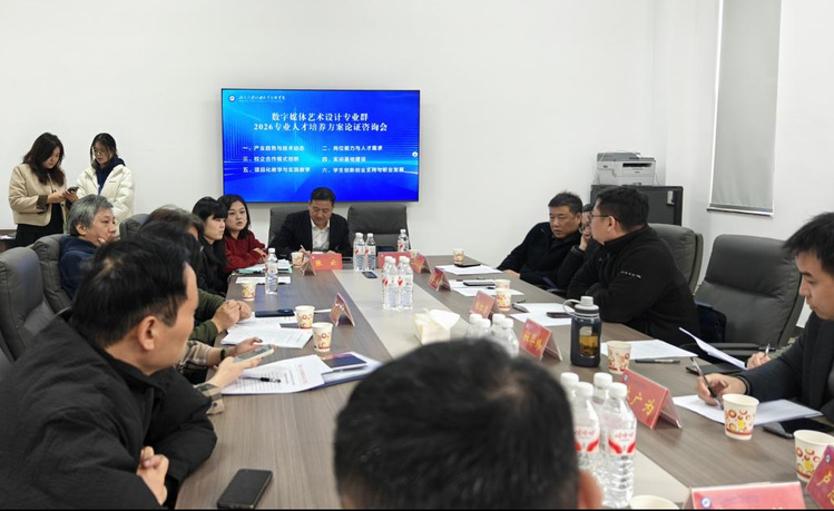 理事会成立仪式后,理事会组织了2026数字媒体艺术设计专业群人才培养论证咨询会,由彭珂珂教授主持,理事会专家们依次发言献策,他们从多方面为人才培养提出建议:结合AIGC背景下的新媒体平台化传播大趋势,提出课程应融入生成式人工智能创作、沉浸媒体交互等前沿内容;企业代表表明岗位偏爱“懂创意+会技术+通逻辑”的通识型人才,建议加强课程跨专业融合;围绕校企合作,探讨“订单培养+项目共建”机制,提议理事会构建企业资源接入通道。在实际操作层面,专家建议对标行业建设“创作-实训-展示”一体化实训基地,将企业真实项目转化为课程任务,并增加职业规划课程,帮助学生适应岗位发展。这些建议为2026年度人才培养方案优化提供了明确方向。