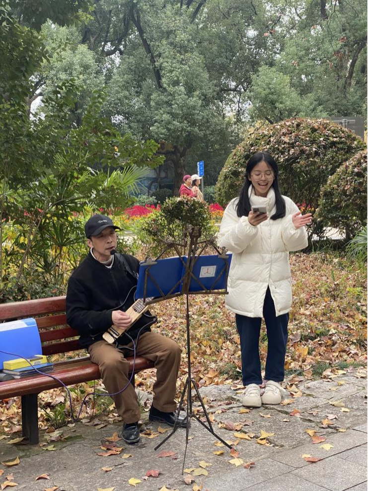 烈士公园体验环节则聚焦“自然人文与生活美学” 的融合教学。学生漫步湖心岛、水杉林,近距离感受中国城市公园的生态景观与居民休闲生活,教师同步引导学生观察中式园林的造景艺术、市民日常生活习俗,将 “生活中的中国美学”“人与自然和谐共生的文化理念” 等教学要点融入实景体验中。这种 “实景教学 + 文化观察” 的模式,让国际学生跳出书本理论,在亲身体验中理解中国文化的生活实践形态,为跨文化传播积累了鲜活的生活素材。