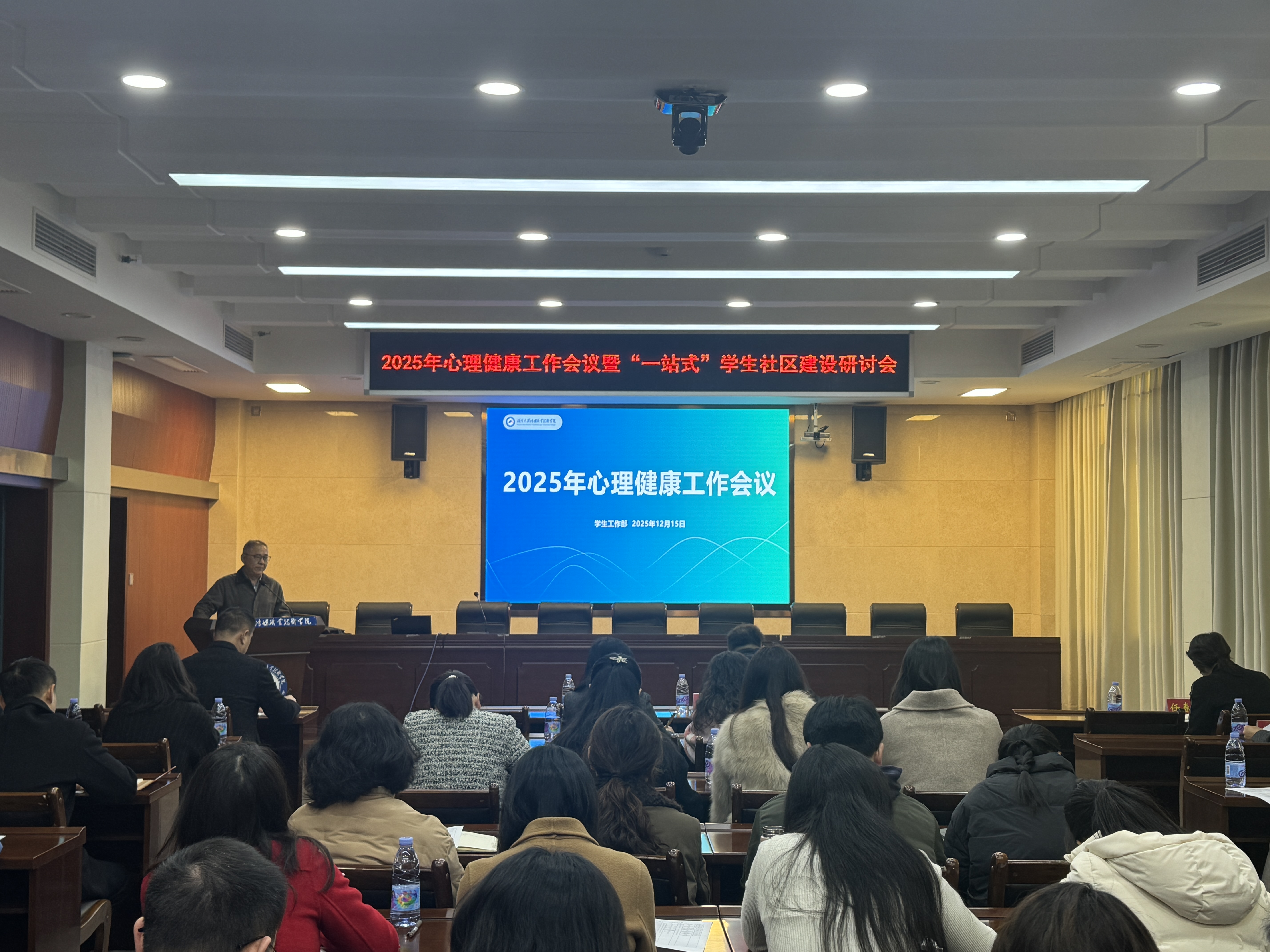 (学生工作部 郭文姣供稿)12月15日,学校召开2025年心理健康工作会议暨“一站式”学生社区建设研讨会。党委委员、副校长朱丹出席会议并讲话。各二级学院党总支书记、副书记、学工办负责人、团总支书记、辅导员及学生工作部全体人员参加会议。