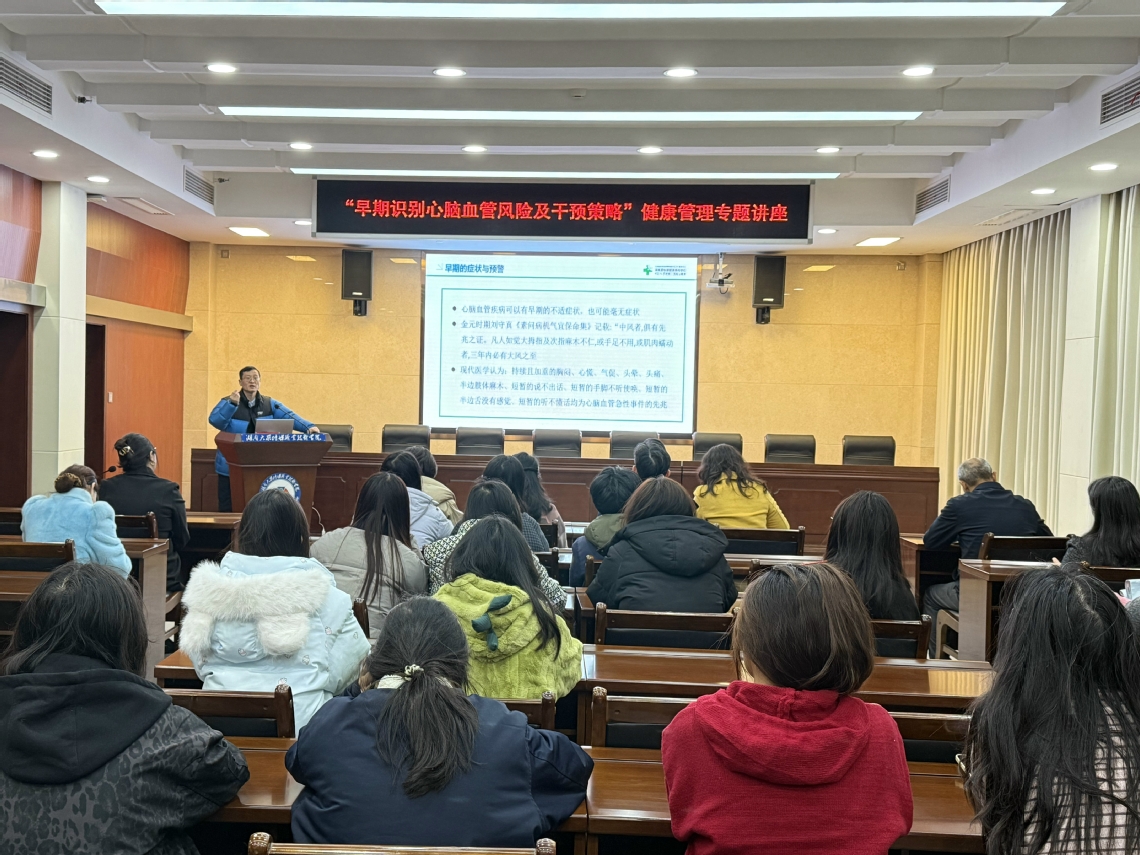 (工会办公室 袁瑾供稿)12月23日下午,校工会在视频会议室举办“早期识别心脑血管风险以及干预策略”主题健康管理讲座,特别邀请湖南星怡康健康管理中心副主任医师罗凌波主讲,为现场教职工送上实用的健康“干货”。