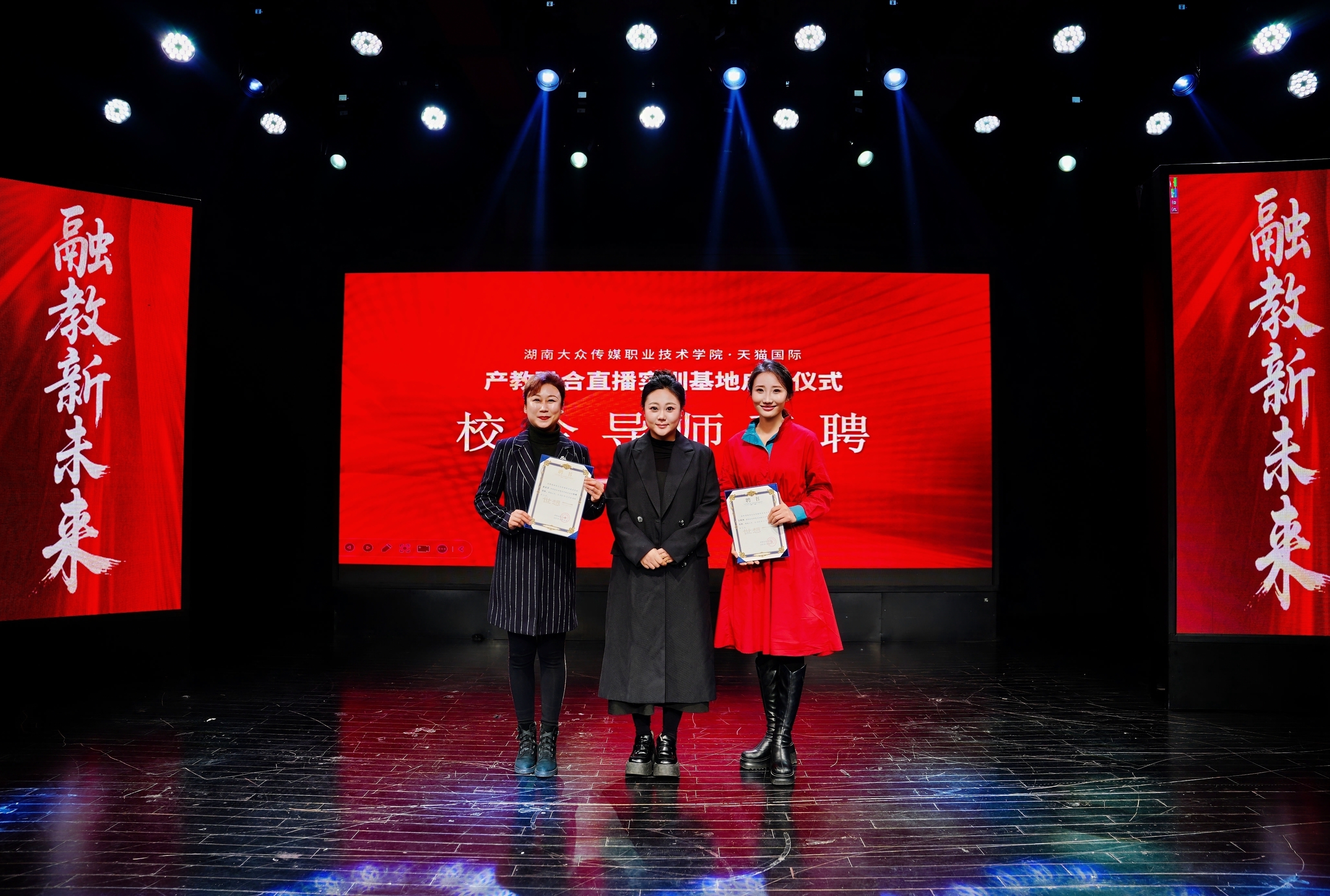 (影视艺术学院 黄丽娟供稿)12月30日下午,湖南大众传媒职业技术学院天猫国际产教融合直播实训基地启航仪式在影视艺术学院梦剧场隆重举行。校领导贺战兵、程桂珍、杨金辉、申剑飞,天猫国际商家直播业务负责人汝成、新开播负责人韩可,杭州世想文化传媒有限公司创始人魏星,学校相关职能部门负责人及师生代表共同出席,见证了这一校企合作的重要时刻。