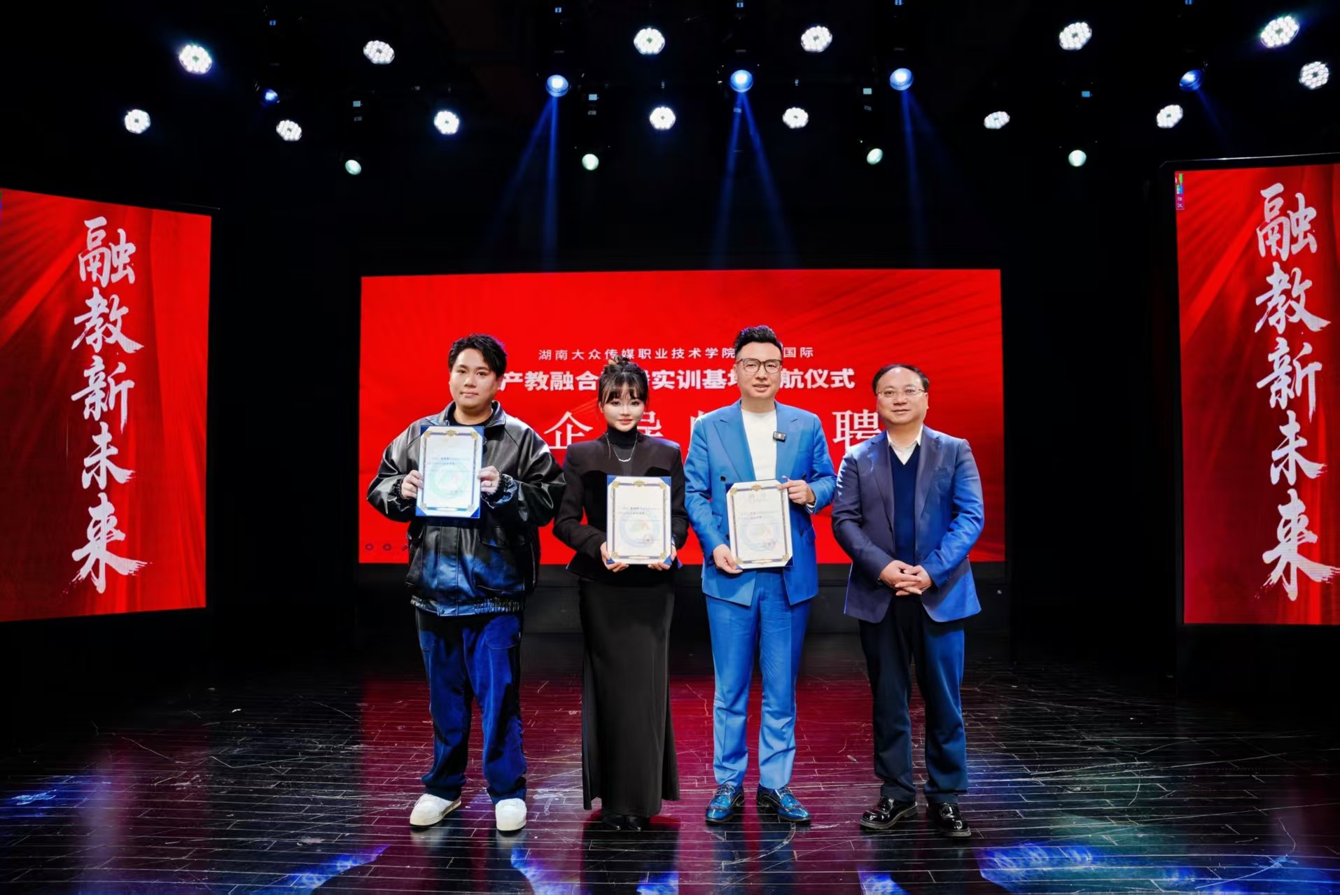 为推动校企合作向深层次、宽领域、可持续方向发展,仪式现场举行了校企互聘导师仪式,贺战兵为薛佳豪、蒋敏娜、刘宇三位企业专家颁发聘书,引入行业力量充实教学队伍;魏星为我校蒋丽芬、吕新艳两位教师颁发聘书,构建起“人才共育、成果共享、责任共担”的发展共同体。
