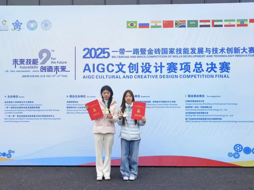 (视觉艺术学院 李红霞供稿)近日,2025“一带一路”暨金砖国家技能发展与技术创新大赛AIGC文创设计赛项总决赛圆满收官。我校视觉艺术学院师生凭借扎实的专业功底与创新设计理念崭露头角,荣获多项荣誉,充分彰显学校在数字文创领域人才培养的实践成效。