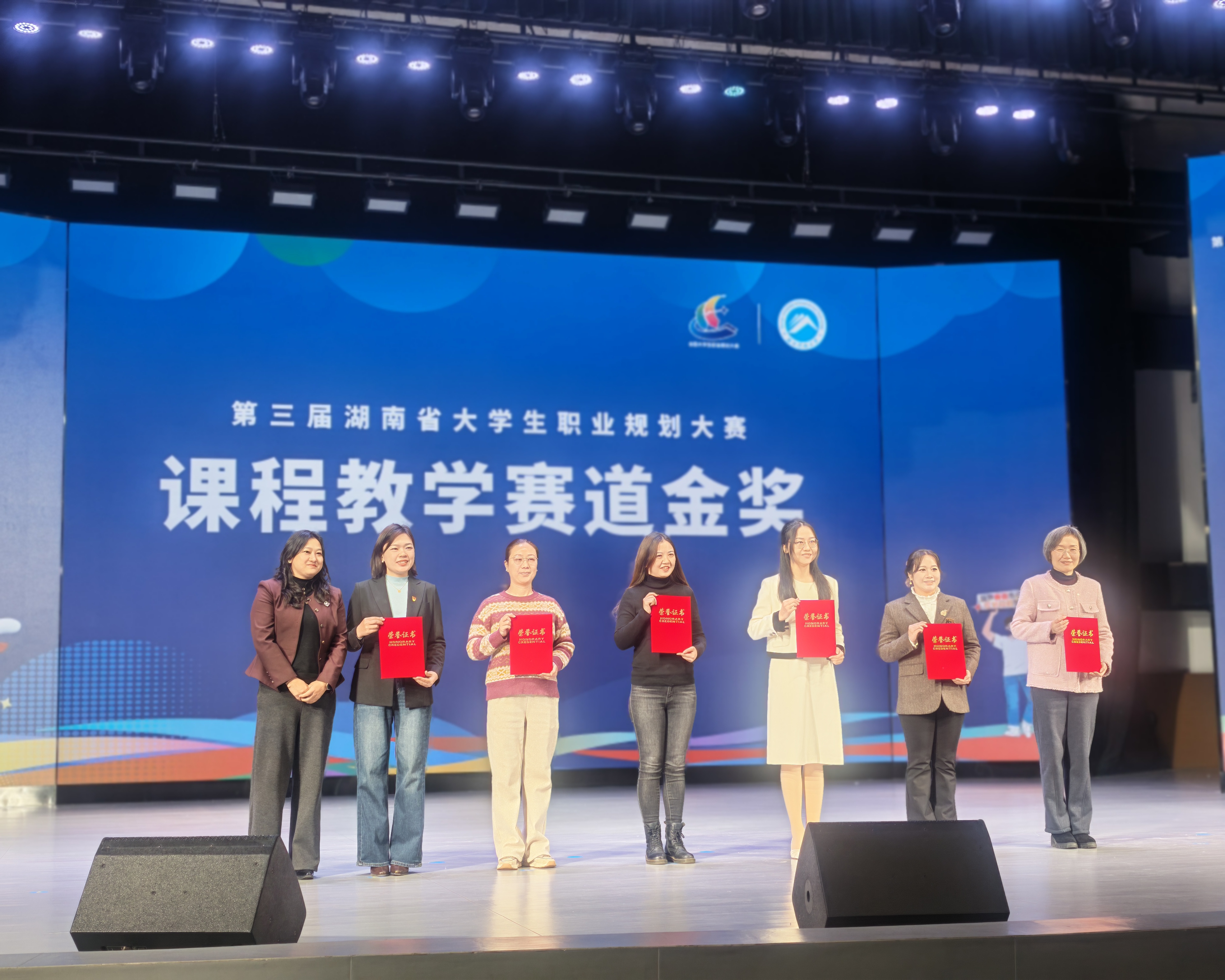 我校学子在比赛中表现优异,凭借扎实的专业功底、清晰的职业规划与昂扬的青春姿态,取得1金1银2铜的佳绩。视觉艺术学院周天雅荣获职教组就业赛道金奖、曾帅获职教组成长赛道银奖;管理学院易语桢和视觉艺术学院王紫妞分别获职教组成长赛道和就业赛道铜奖;谢蓓老师获“优秀指导老师”称号;马克思主义学院晏苹老师获课程教学赛道金奖;学校荣获“优秀组织奖”。