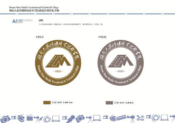 3、主图案下方标注“—2000—”,表示学院成立于2000年。左右各一个“——”表示学院既有久远的办学历史(1949年成立的湖南银行学校、1958年成立的湖南省广播电视学校),又有值得期待的未来。