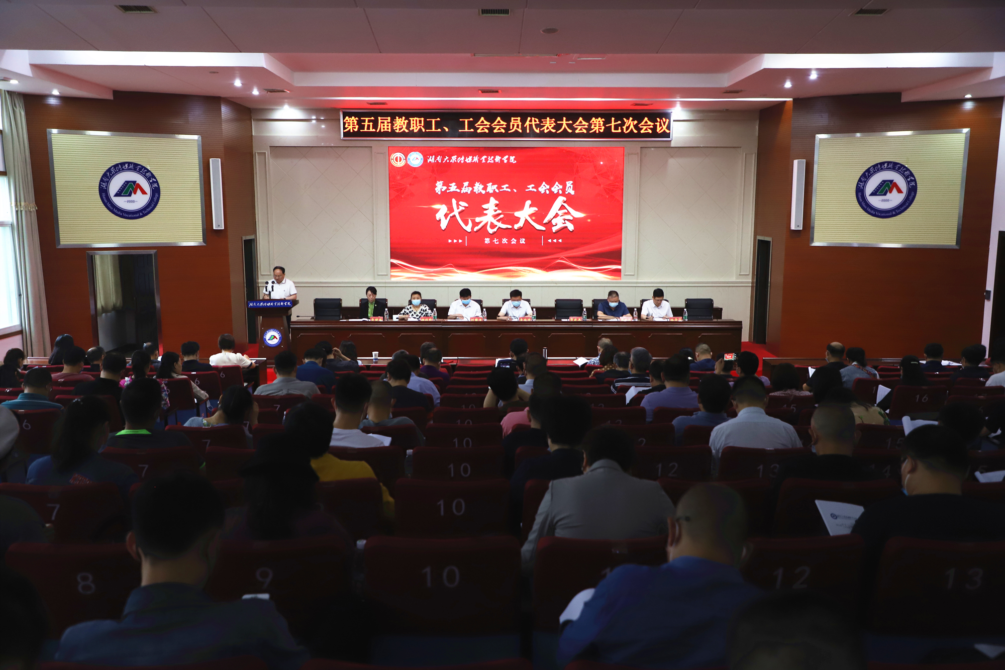 (工会办 供稿)5月27日,学院隆重召开第五届教职工代表、工会会员代表大会第七次会议。135名教职工代表、工会会员代表肩负全院教职工的重托,齐聚一堂,共商学院发展大计。全体院领导出席大会,学院党委书记袁维坤发表讲话,党委副书记、院长贺战兵作题为《勇开新局谋发展守正创新攀高峰 奋力谱写高质量发展新篇章》的2021年行政工作报告。特邀离退休老同志代表等列席会议。
