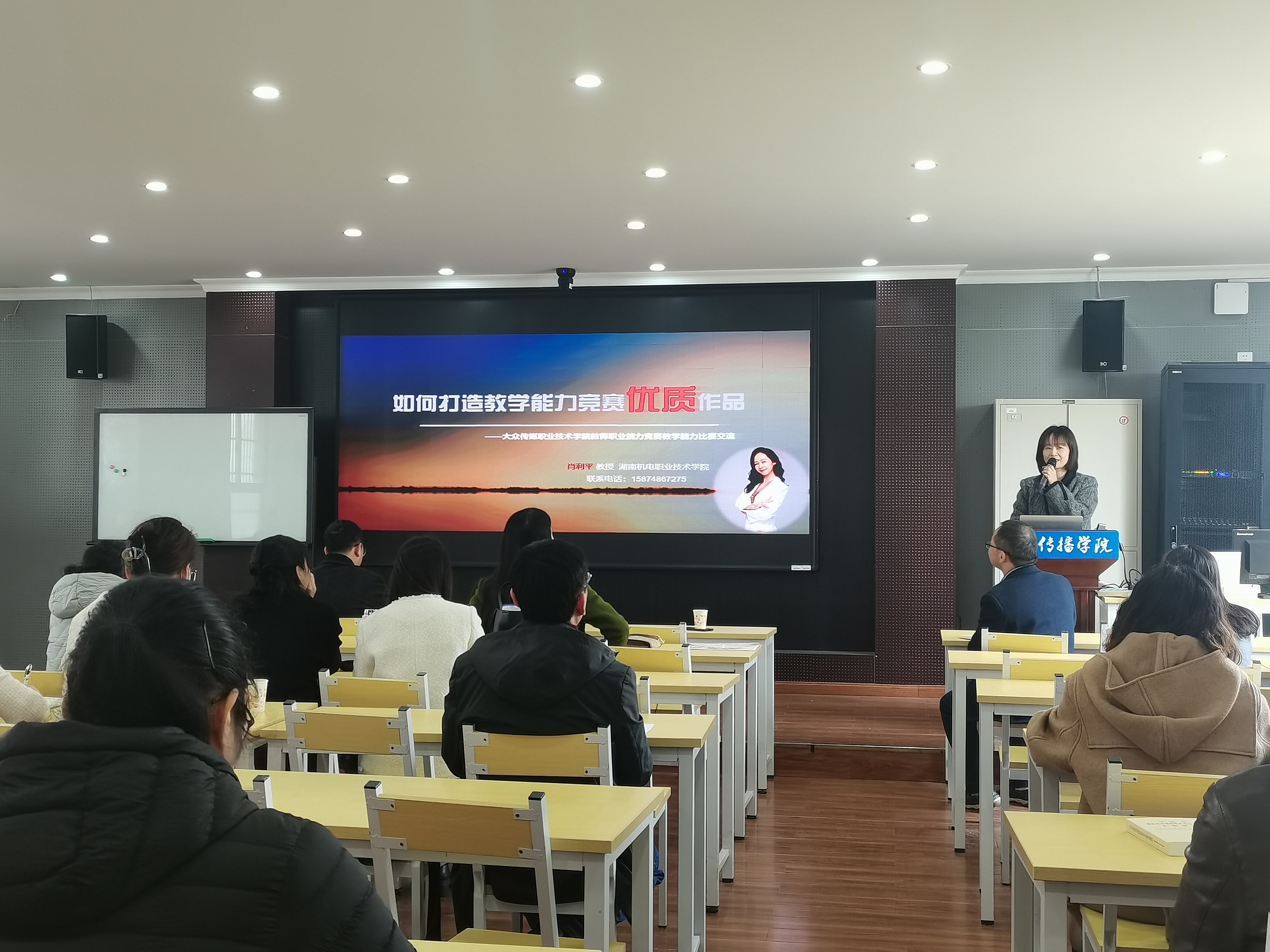 (国际传播学院 供稿)4月25日下午,国际传播学院邀请全国职业院校教师职业能力大赛一等奖主持人、湖南机电职业技术学院肖利平教授作了专题讲座,讲座的题目是“如何打造教学能力竞赛优质作品”。
