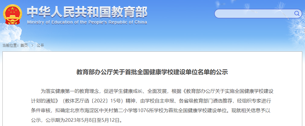 (学生工作处 供稿)日前,教育部公示了首批全国健康学校建设单位名单,我校成功入选。