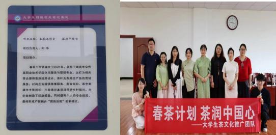 搭建团队两年多以来,他带领团队两度拿下“互联网+”及“黄炎培”创新创业规划大奖,更在 2022年以项目《春茶计划——长沙县金井茶乡小镇乡村振兴志愿者服务》成功入选《2022年度文化艺术职业教育和旅游职业教育提质培优行动计划》,得到新湖南、红网、腾讯网等媒体报道。