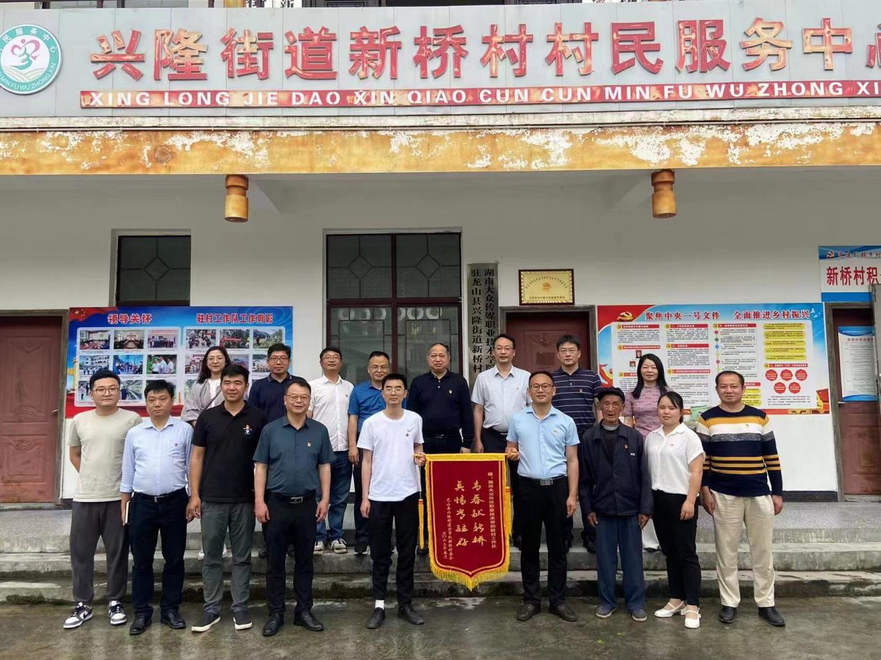 座谈会上,第一批驻村工作队第一书记何发胜对学校党委行政、龙山县委县政府等给予工作队的关心和支持表达感谢,对两年来驻村帮扶工作和成果如数家珍般的进行了总结汇报。第二批驻村工作队第一书记颜家水发言表态一定接过乡村振兴“接力棒”,带领队员学习理论知识,了解村情民情,迅速进入角色,不负组织重托。兴隆街道党工委、新桥村村委会分别向帮扶后盾单位和工作队送上荣誉证书和荣誉锦旗,代表全体村民表示感谢。